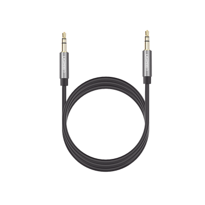 Cable Auxiliar 2 Metros / Conector 3.5mm a 3.5mm / Macho a Macho / Cubierta de TPE / Carcasa de Aluminio / Color Negro