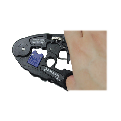 - La cuchilla de extracción ajustable para UTP/STP acomoda diferentes espesores de aislamiento sin dañar los conductores