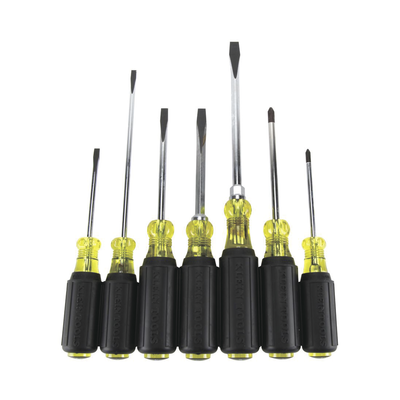 - Incluido: 7 desarmadores con mango acojinado; uno de barra cuadrada de 1/4” (6,4 mm); 3/16”; 5/16” (4,8 mm a 7,9 mm); punta cabinet de 3/16” con barra de 3” (76,2 mm); punta cabinet de 3/16” (4,8 mm) con barra de 6” (152,4 mm); punta cabinet de 1/4” (6,4 mm); Phillips n.º 1 y Phillips n.º 2Aislado: No