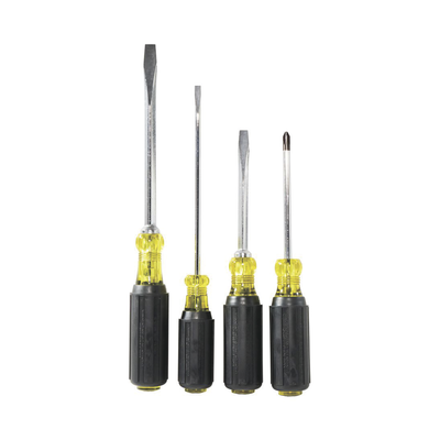 - Juego de desarmadores que incluye desarmadores de punta Phillips, dos de punta plana y uno de punta cabinet.