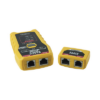 - Probador de cables con botón único de prueba de cables de voz y datos terminados RJ11, RJ12 y RJ45.