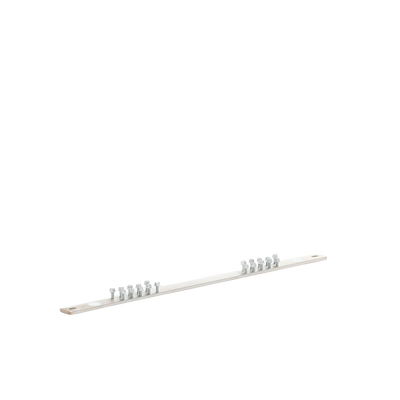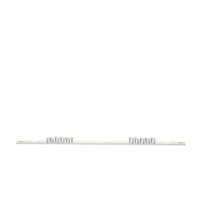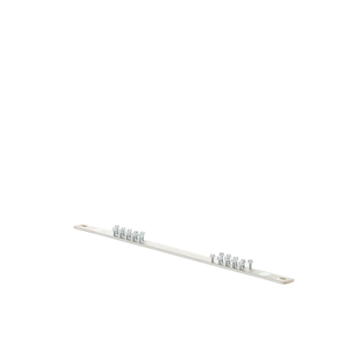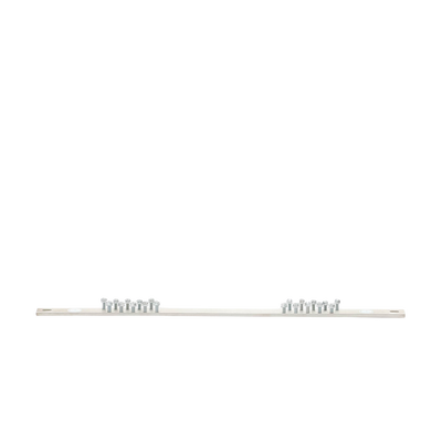 Barra colectora de conexión a tierra, longitud de 19 ‘(483 mm), estañada, veinte orificios para flexibilidad en el montaje, con veinte tornillos de cabeza hexagonal # 12-24 x 1/2’ instalados, los juegos de orificios de montaje tienen un espaciado de 5/8 ‘(15.9 mm) , provisto de dos tornillos N ° 12-24 x 1/2 ‘, M6 x 12 mm que forman roscas, y dos arandelas planas # 12 para el montaje.