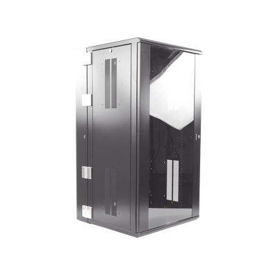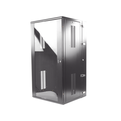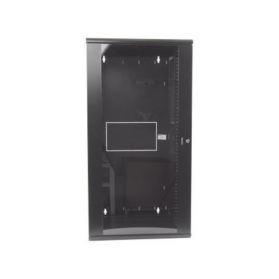 Gabinete de montaje en pared construido en acero, soporta 26 unidades de Rack para equipos de red activos o pasivos. Cuenta con paneles laterales totalmente desmontables y esta diseñado para permitir el control de clima adecuado para uso con diversos equipos de red, así como Switches de alimentación remota (PoE) y fuentes de alimentación ininterrumpida (UPS).